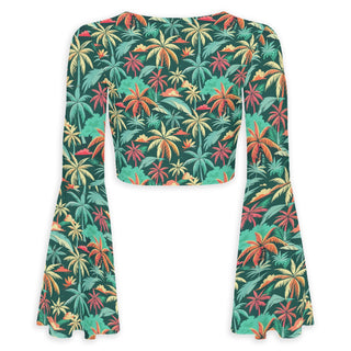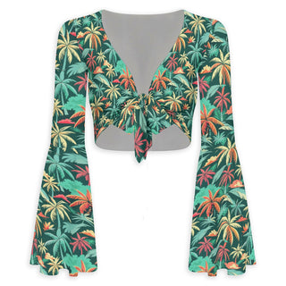 Florida Staycation Flared Sleeve Tie-Front Crop Top
