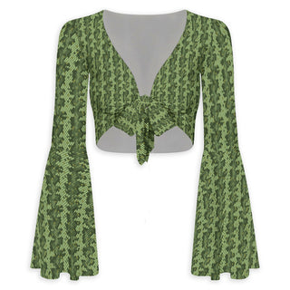 G.I Vixen Flared Sleeve Tie-Front Crop Top