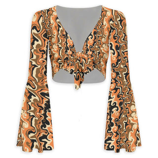 Pumpkin Spicey Flared Sleeve Tie-Front Crop Top