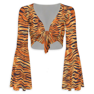 - Wild Woman Flared Sleeve Tie-Front Crop Top